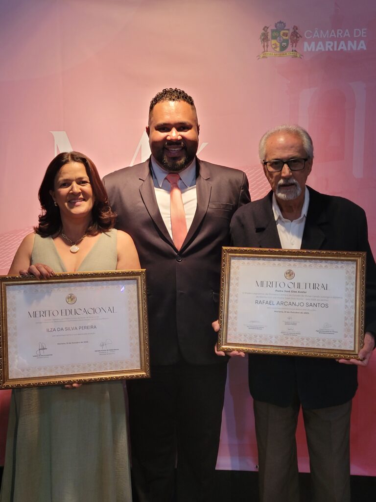 Presidida pelo vereador Ediraldo Ramos (PSB), presidente da Câmara Municipal, a solenidade reuniu parlamentares, autoridades políticas e religiosas, convidados e os homenageados de 2025, que, com suas trajetórias marcantes, demonstraram um profundo compromisso com a cidade histórica e o futuro de Mariana. “É muito importante essa Comenda Méritos, estamos homenageando professoras e outras pessoas de suma importância para a sociedade. Meus parabéns para todos os homenageados”, frisou Ediraldo.