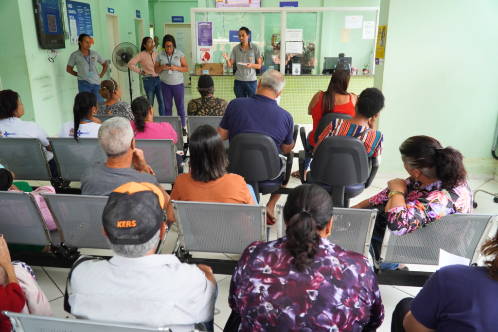 Os agentes de combate a endemias (ACE) realizaram salas de espera educativas, com orientações sobre eliminação de focos do mosquito e demais cuidados preventivos, nas Unidades Básicas de Saúde (UBS) Nossa Senhora de Fátima e Santa Rita, e no Centro Estadual de Atenção Especializada (Ceae).