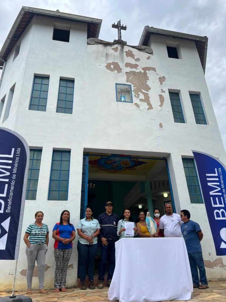 A Bemil Mineração assinou, nesta terça-feira (18), o termo de cooperação que viabiliza a reforma da Igreja de Nossa Senhora das Graças, localizada na comunidade da Bocaina, em Ouro Preto. O documento formaliza a parceria entre a empresa, a Paróquia Nossa Senhora de Nazaré e a Associação de Moradores da Bocaina de Baixo.